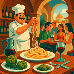 * ピーターは友達と一緒にTrattoria al Moro Romaでディナーを楽しめます!