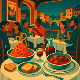 * ピーターは友達と一緒にTrattoria Sora Lella Romaでディナーを楽しめます!
