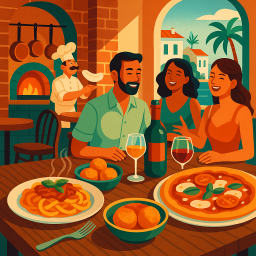 * ピーターは友達と一緒にTrattoria Vecchia Milano Lagosでディナーを楽しめます!
