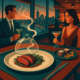 We’ve got a present from our children: a dinner in this restaurant . So we visited it and everything can be described as incredible: service, view,, food and even cutlery. The restaurant is placed on 55th floor so probably all city can be seen, esp