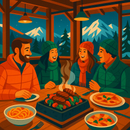 * ピーターは友達と一緒にVulcania Mammoth Lakesでディナーを楽しめます!